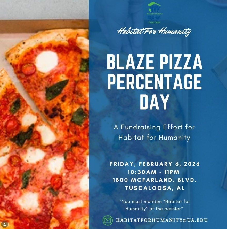 University of Alabama, Habitat Campus Chapter: Blaze Pizza Percentage Day